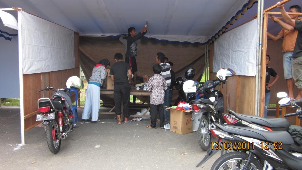 Persiapan stand ini banyak dibantu oleh fasilitas yang dimiliki oleh Ibu Nada, mulai dari meja, kursi, sampai terpal dan kain untuk melapis dinding ruang pameran. Setelah selesai memasang kain, para relawan mengambil inisiatif untuk membuat pagar agar stand tidak terlalu kaku.