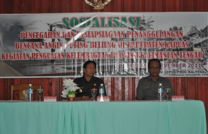 Dalam acara pembukaan Sosialisasi Pencegahan dan Kesiapsiagaan Dalam Penanggulangan Bencana Angin Puting Beliung, Bapak Suraria Nahan selaku Wakil Bupati Kab. Kapuas membacakan sambutan tertulis dari Bupati Kab. Kapuas dan sekaligus membuka acara kegiatan sosialisasi tersebut. Sambutan tersebut diantaranya Beliau mengatakan, keberhasilan penanggulangan bencana sangat ditentukan oleh kesiapsiagaan para petugas pelaksana di lapangan, peran serta warga masyarakat, peran instansi terkait serta tersedianya sarana pendukung baik berupa pedoman maupun peralatan fisik.