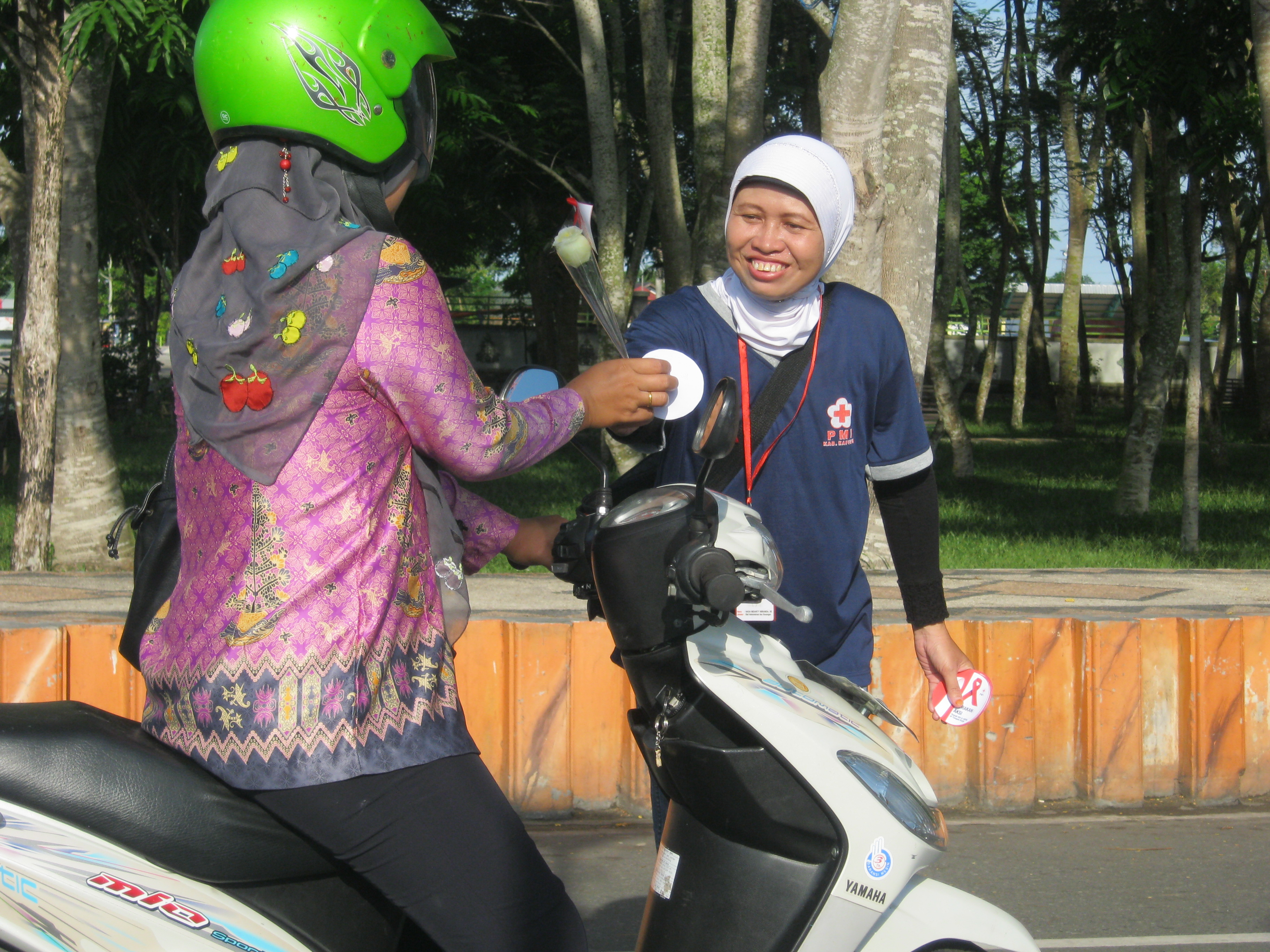 Dalam rangka memperingati Hari AIDS Sedunia yang jatuh pada tanggal 1 Desember 2011, Palang Merah Indonesia Kabupaten Kapuas melakukan kegiatan pembagian bunga dan bingkisan kepada para pengguna jalan di Jalan Tambun Bungai, tepatnya di depan rumah sakit, pada tanggal tersebut diatas. Bingkisan yang berupa tempat pensil dan kotak plastik serta balon disumbangkan oleh distributor Nestle dan Ice Cream Walls di Kuala Kapuas. Selain itu juga diberikan stiker dari PMI yang berisi pesan Gerakan Aksi Peduli HIV & AIDS di Tempat Kerja.