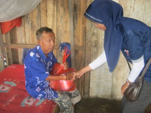 Rangkaian kegiatan yaitu membagikan bingkisan sembako untuk memenuhi kebutuhan sehari-hari kepada Bapak Joni yang menderita Katarak payah sampai matanya tidak bisa melihat dan warga KABULAT yang menderita Penyakit Kusta.