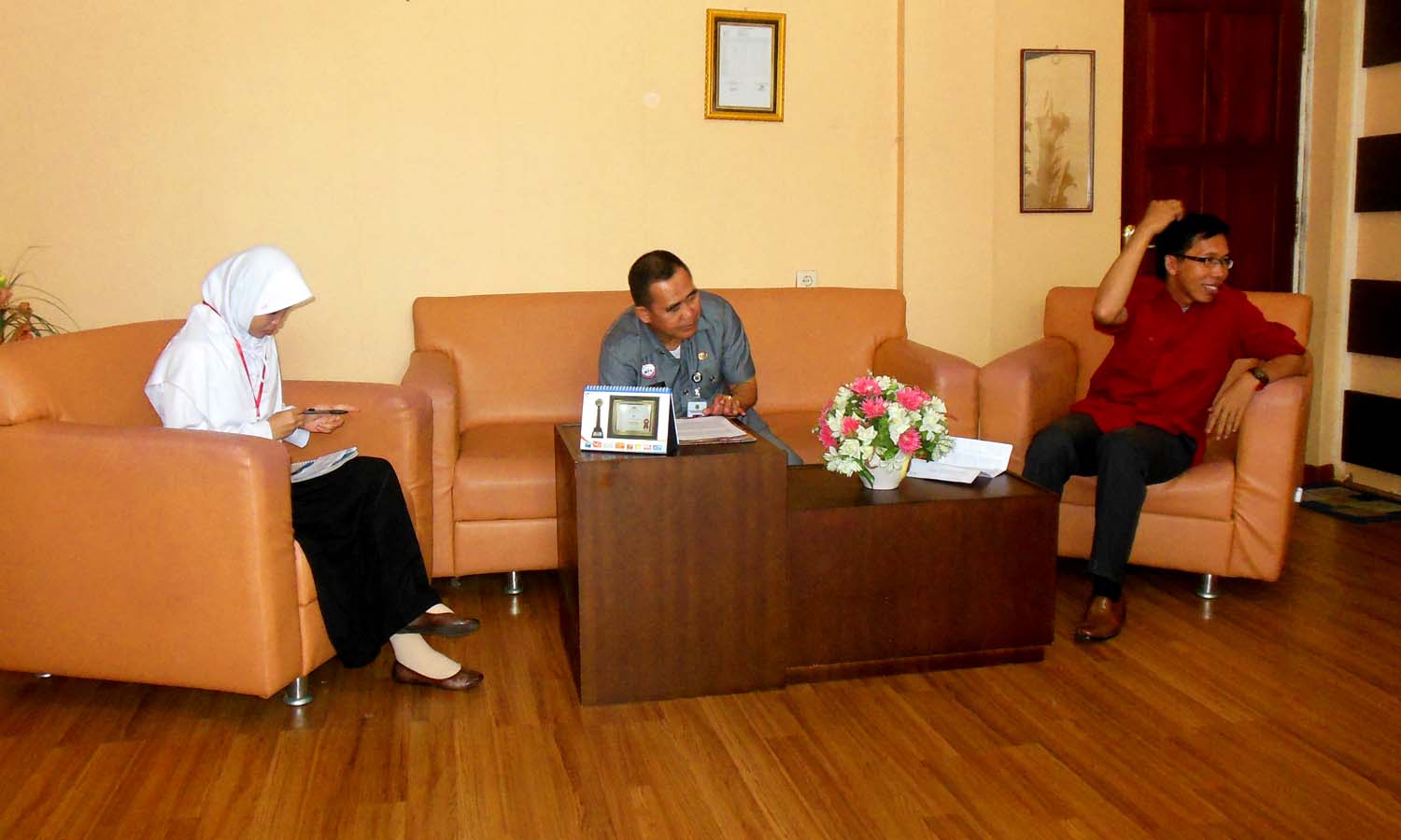 Foto bersama Ketua PMI Kapuas Drs, H Nurul Edy, Kabag Humas Kapuas Drs. Soewarno M., Irma, Sri dan Fendy setelah acara talk show “Suara Kapuas” Kapuas tv