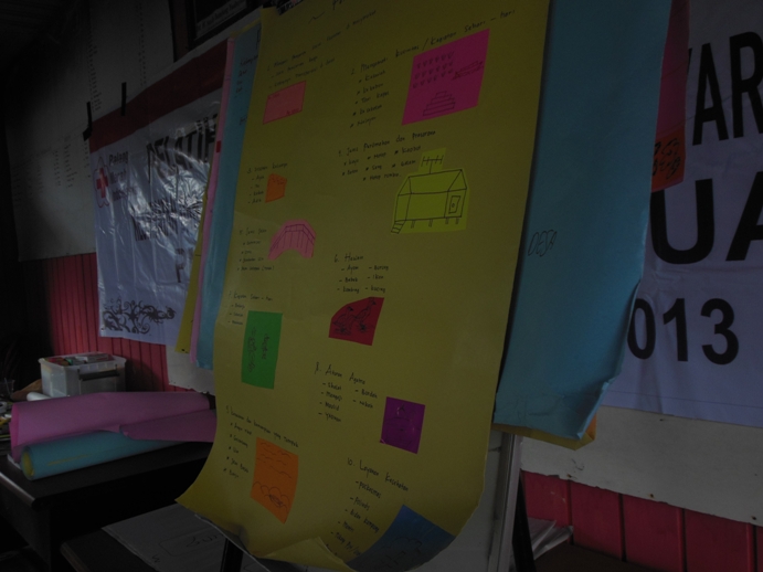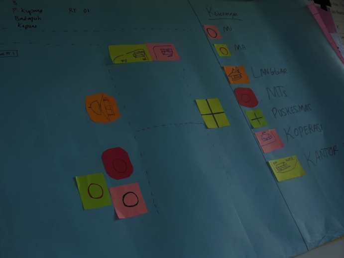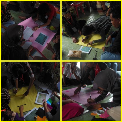 Setelah itu,relawan desa membentuk beberapa kelompok kerja untuk membuat kalender musiman,peta masyarakat,pengamatan langsung dan jalan lintas.Kendala yang terjadi saat pengerjaannya yaitu kurangnya peralatan yang diperlukan untuk para relawan desa membuat 4 hal tersebut.