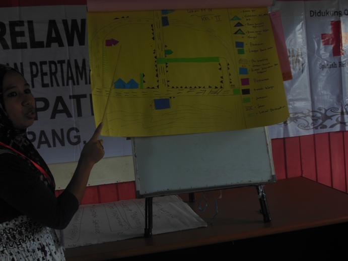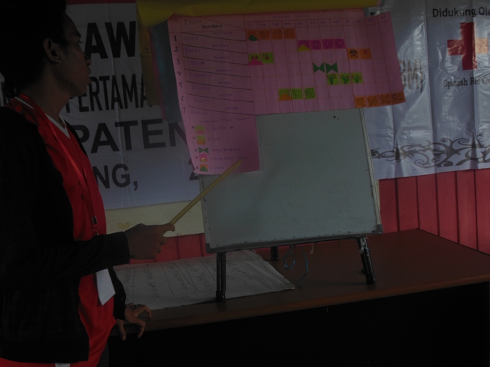 Pada materi pengamatan langsung,PMI cabang memberikan penjelasan kepada masyarakat desa Kupang mengenai