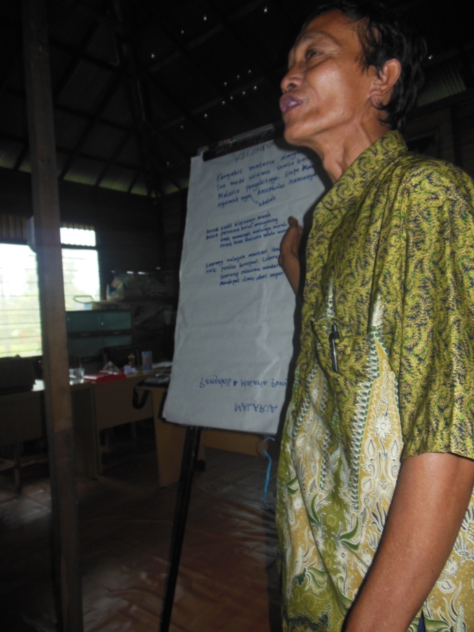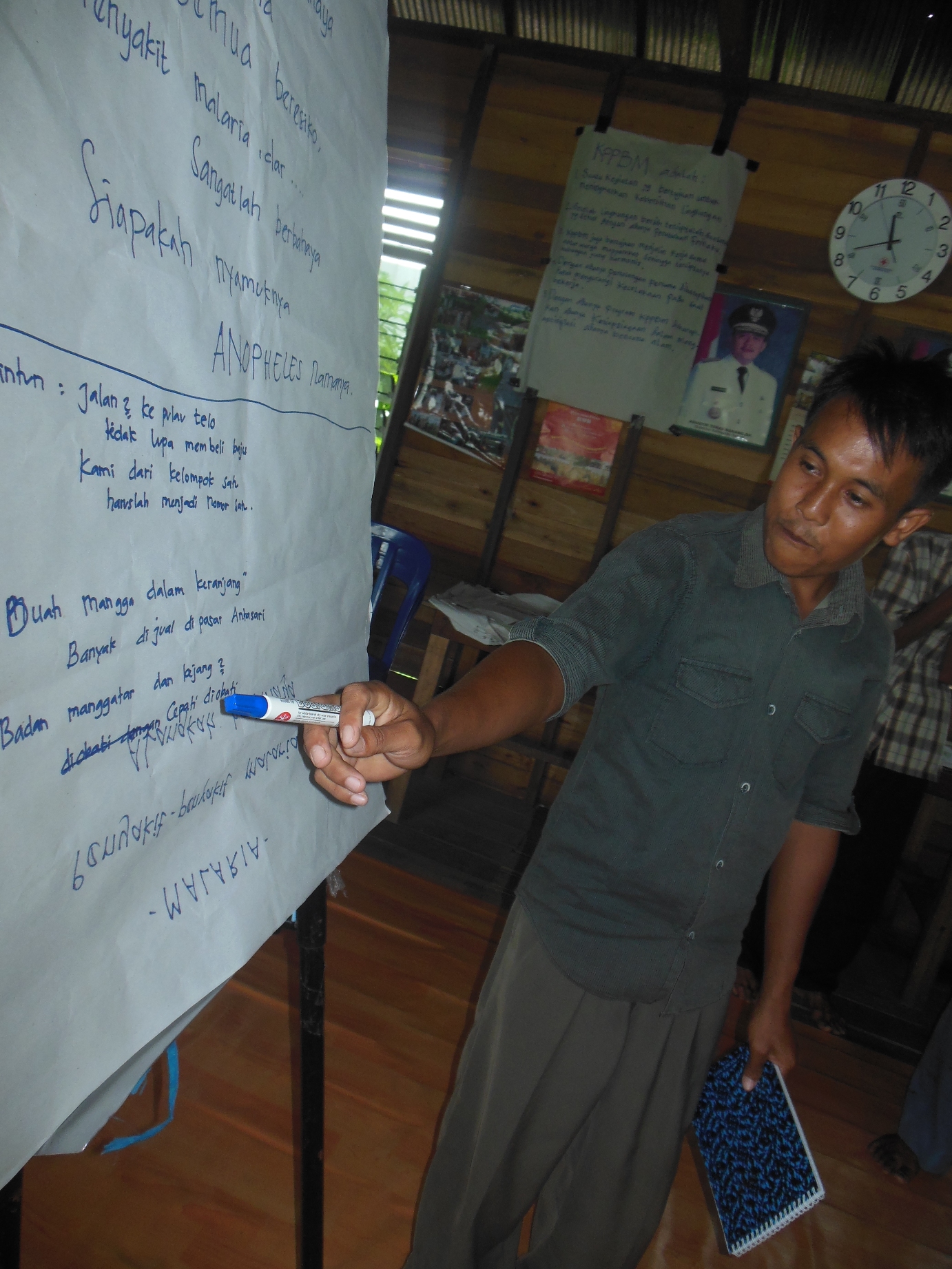 Pada kesempatan kali ini PMI Kabupaten kapuas memberikan materi kepada relawan desa mengenai penyakit malaria.Sebelumnya fasilitator meminta kepada relawan desa untuk menyebutkan apa-apa saja yang diketahui mengenai penyakit malaria.