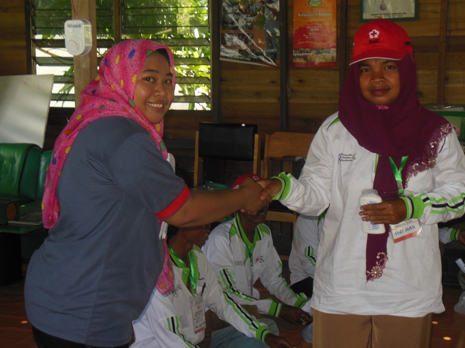 Namun sebelumnya dari relawan cabang membagikan seragam yang berwarna hijau putih,, tak lupa sebuah topi yang berwarna merah. Relawan desa sangat antusias sekali menadapatkan seragam dan topi. Semua relawan desa langsung mengenakan pakaian seragam dan topi itu.
