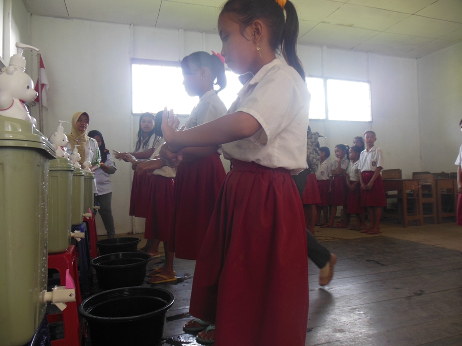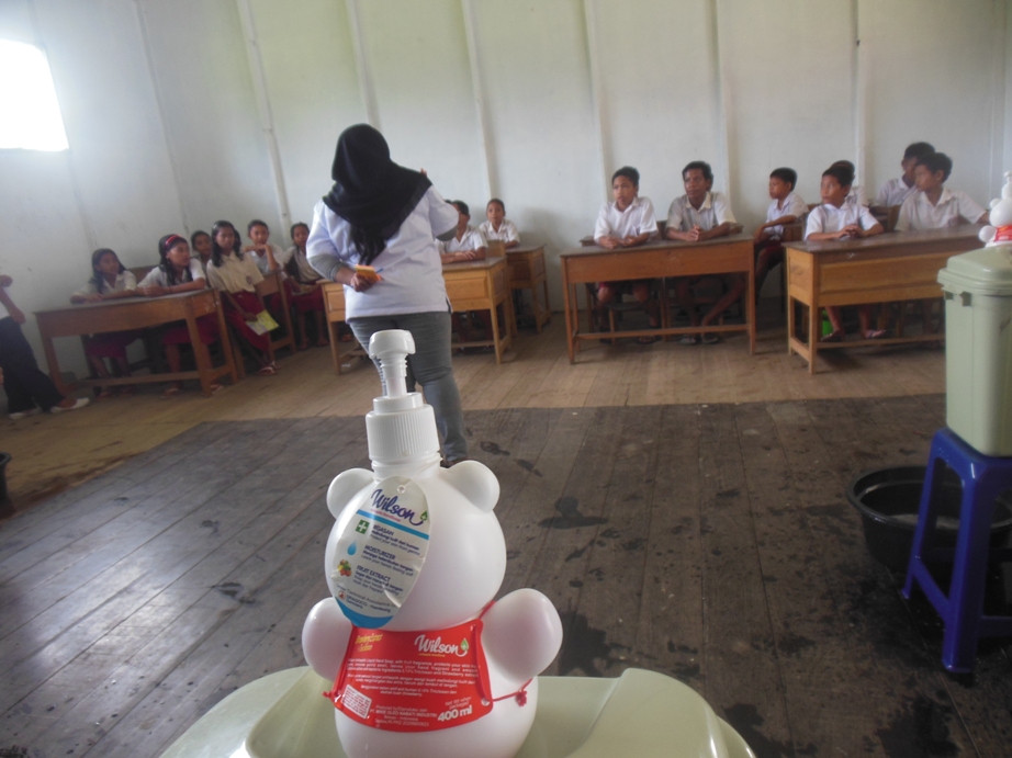 Setelah melakukan assessment minggu lalu,selanjutnya kami melakukan penyuluhan tentang bagaimana cara mencuci tangan yang baik dan benar di lima waktu penting kepada para murid. Setelah melakukan penyuluhan dan memperagakan cara mencuci tangan yang baik dan benar,selanjutnya kami mengajak murid kelas 4 dan 5 untuk mempraktekkannya.