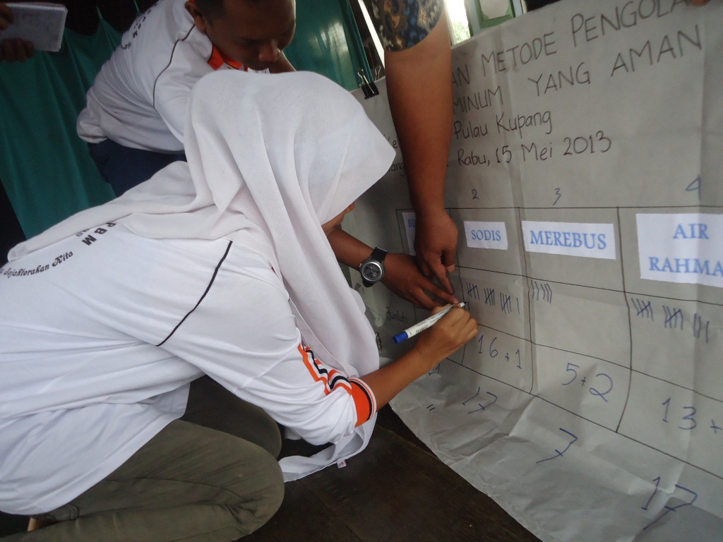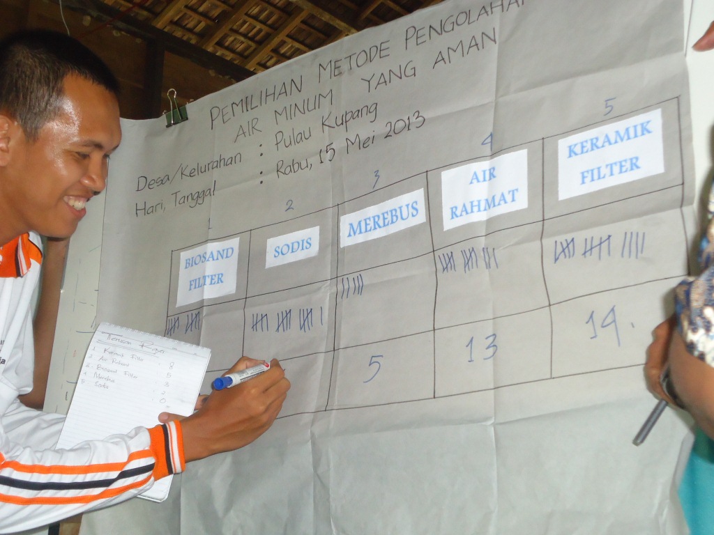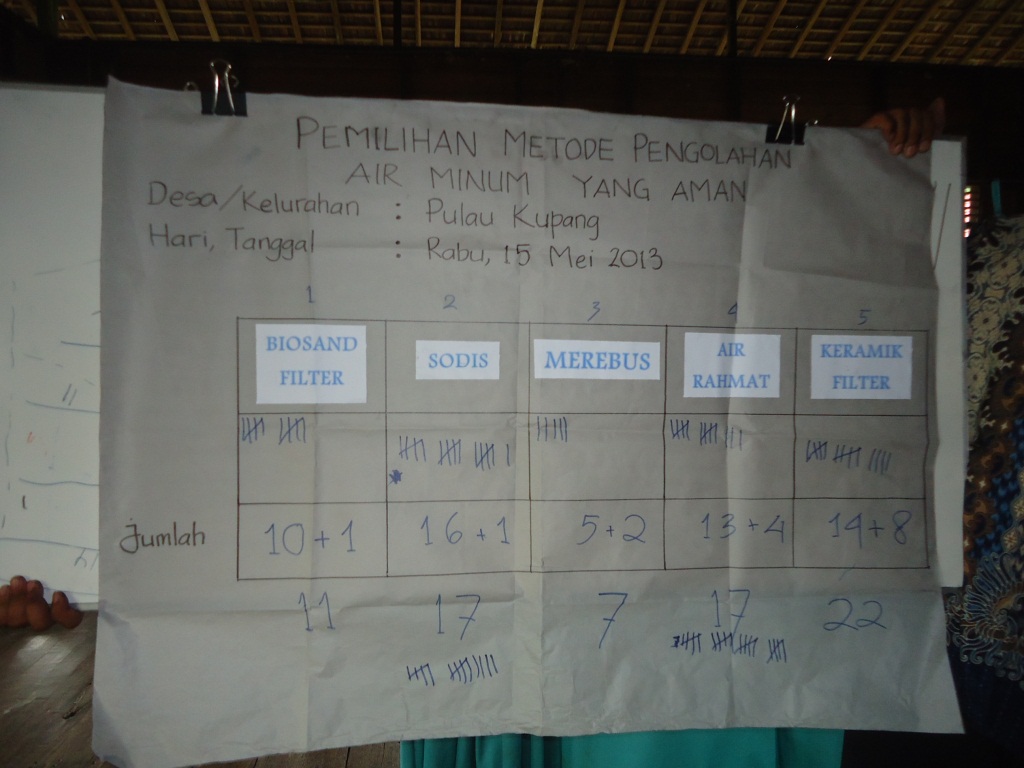 Setelah melakukan promosi kepada Relawan kelurahan yang lain, selanjutnya mereka melakukan pemilihan metode air yang mana metode itu akan digunakan oleh mereka dan warga Pulau Kupang itu sendiri.