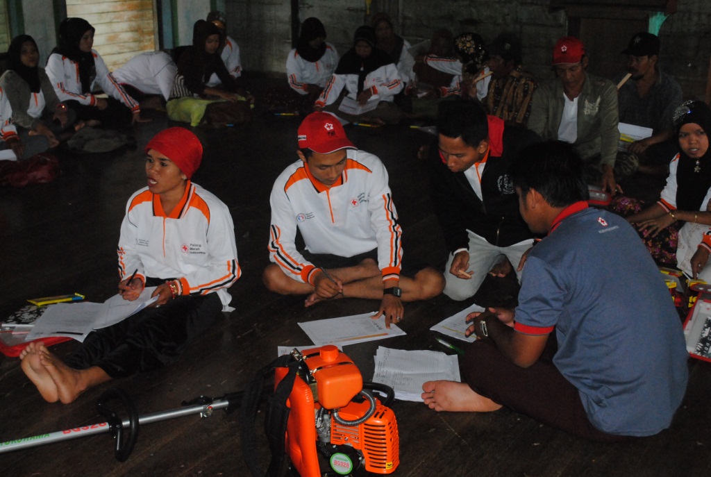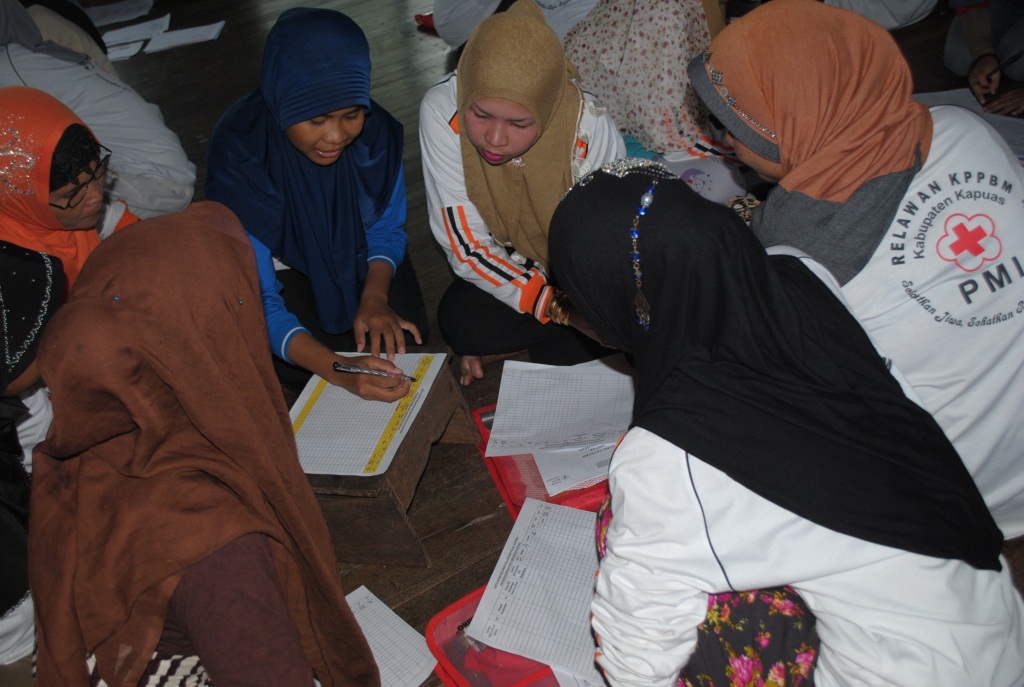 Relawan kelurahan menyusun laporan bulanan berkaitan dengan topik diare yang pada awal bulan mereka telah mendapatkan pelatihan tentang topik tersebut serta mereka juga telah melakukan kunjungan rumah tangga selama kurang lebih 4 minggu. Sekaligus dari pihak PMI Kabupaten Kapuas memberikan bantuan kepada masyarakat Pulau Kupang yang berupa barang mesin potong rumput sebanyak 10 unit untuk keberlangsungan dan pendukung program Aksi BISA ( Bersih,Indah,Sehat,Aman ) yang diserahkan kepada Lurah Pulau Kupang yang disaksikan oleh relawan kelurahan dan Komite Kelurahan langsung.