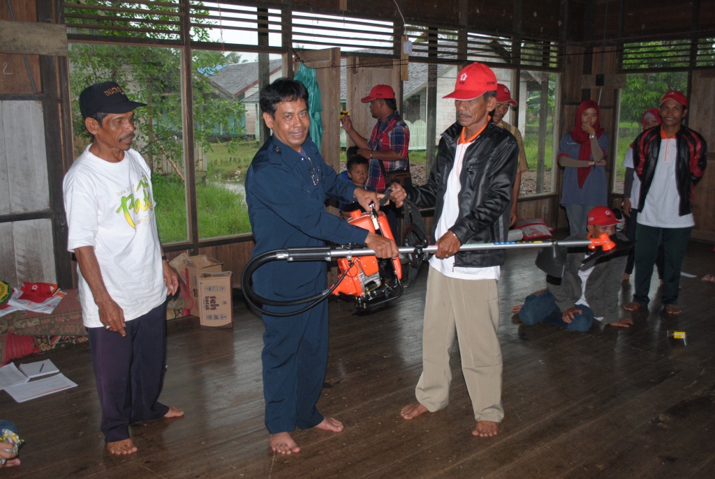 Setelah diserahkan kepada Lurah Pulau Kupang,pak Lurah kembali menyerahkan kepada relawan kelurahan yang sebelumnya telah dibuat susunan pengurus untuk bertanggung jawab atas mesin rumput tersebut.