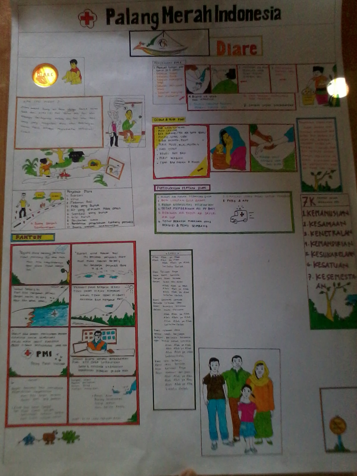 Di minggu lalu relawan desa mendapat PR yaitu masing-masing RT membuat materi KIE berupa poster untuk topik malaria dan diare, sebenarnya pada bulan Mei lalu materi diare telah mulai di sampaikan di masyarakat yang dikunjungi namun karna ada perubahan mekanisme dalam kunjungan rumah tangga maka materi ini pun kembali di bahas pula. Dari apa yang di sampaikan oleh relawan desa melalui materi KIE nya meteri tersebut telah hampir mengcover apa yang ingin di sampaikam oleh fasilitator yang di antaranya: