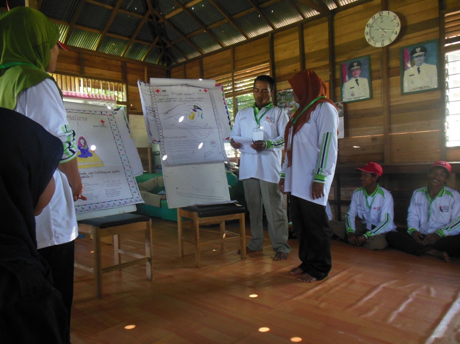 8 Relawan PMI Kabupaten Kapuas bersama dengan 52 Relawan desa Terusan Raya mengadakan kembali pelatihan KPPBM, yaitu kali ini mengenai Topik MALARIA.