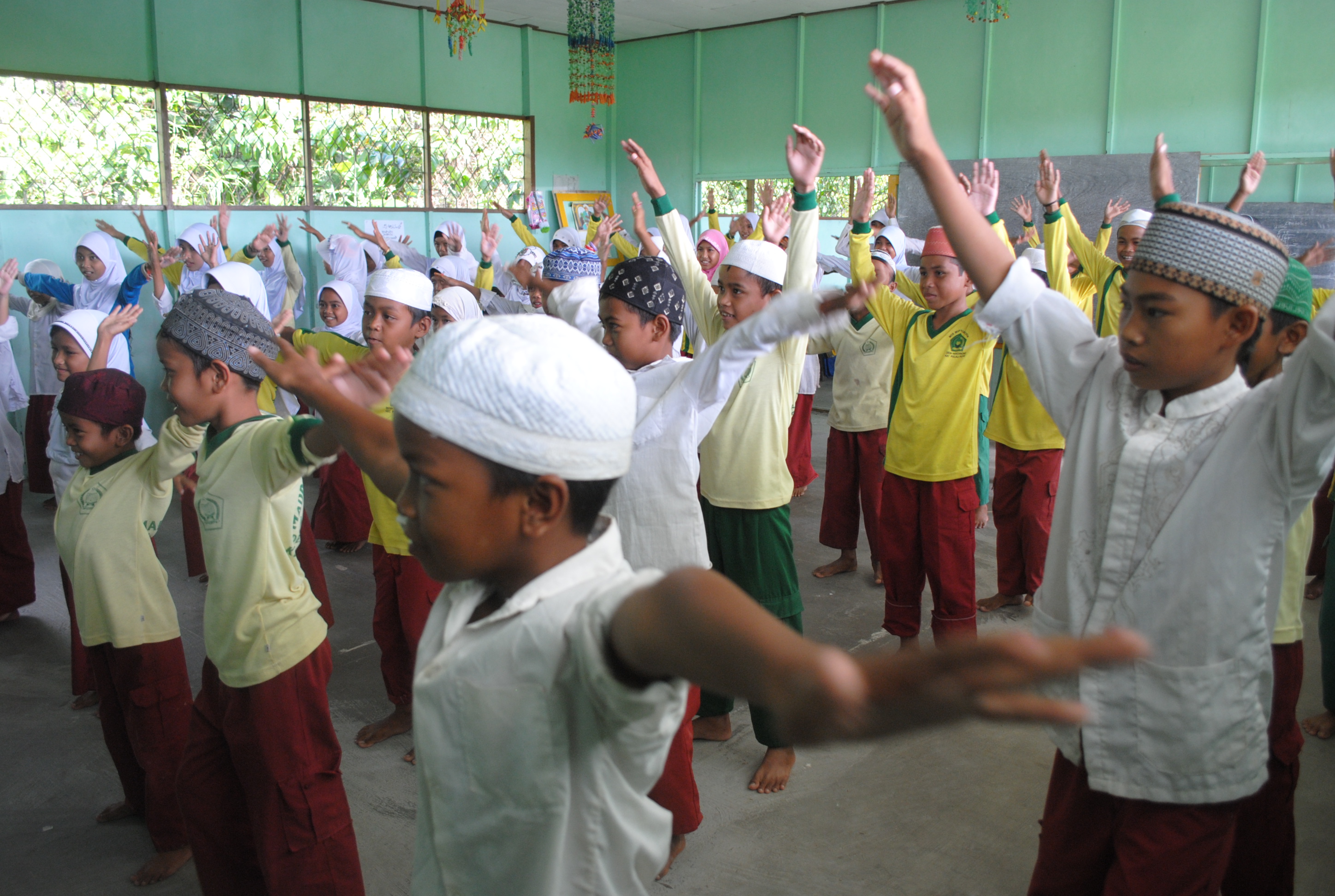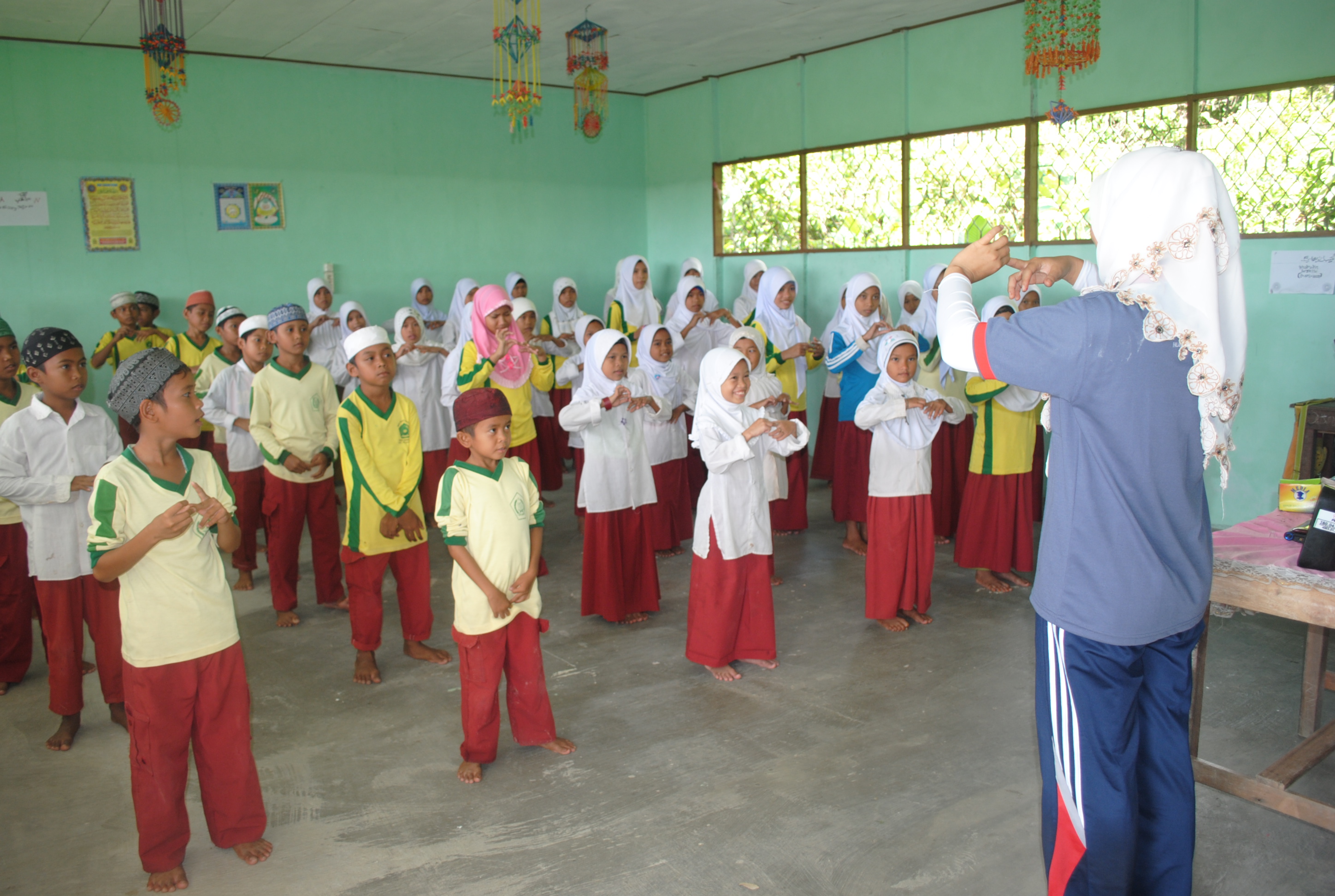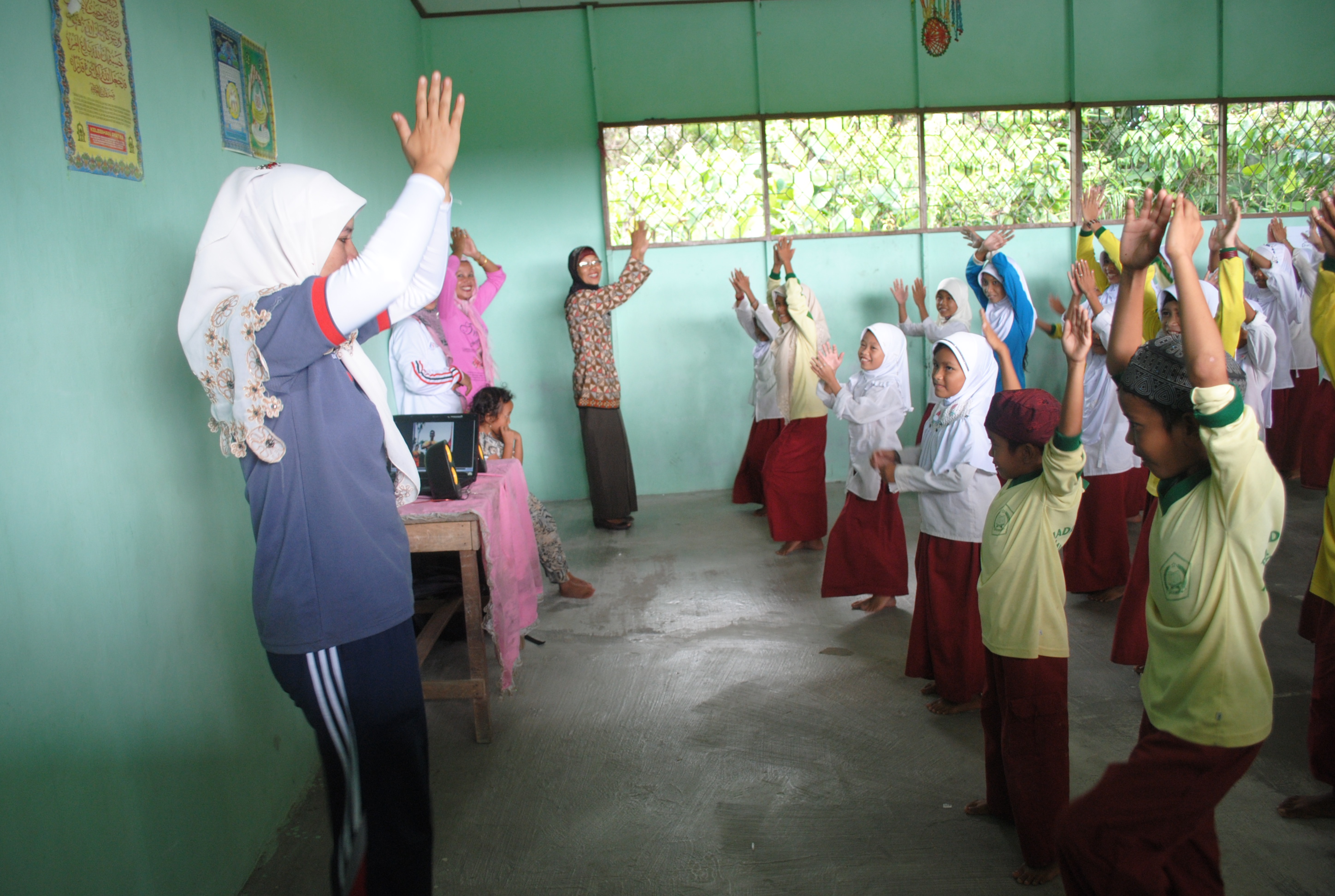 Dua orang Relawan PMI kab.Kapuas dan dua orang Relawan Desa melakukan SENAM BERSAMA siswa-siswi kelas 4 dan 5 MI MIFTAHUDDIN. Relawan Cabang mengajarkan kepada siswa-siswi agar melakukan senam minimal satu kali dalam satu minggu agar tubuh menjadi sehat.