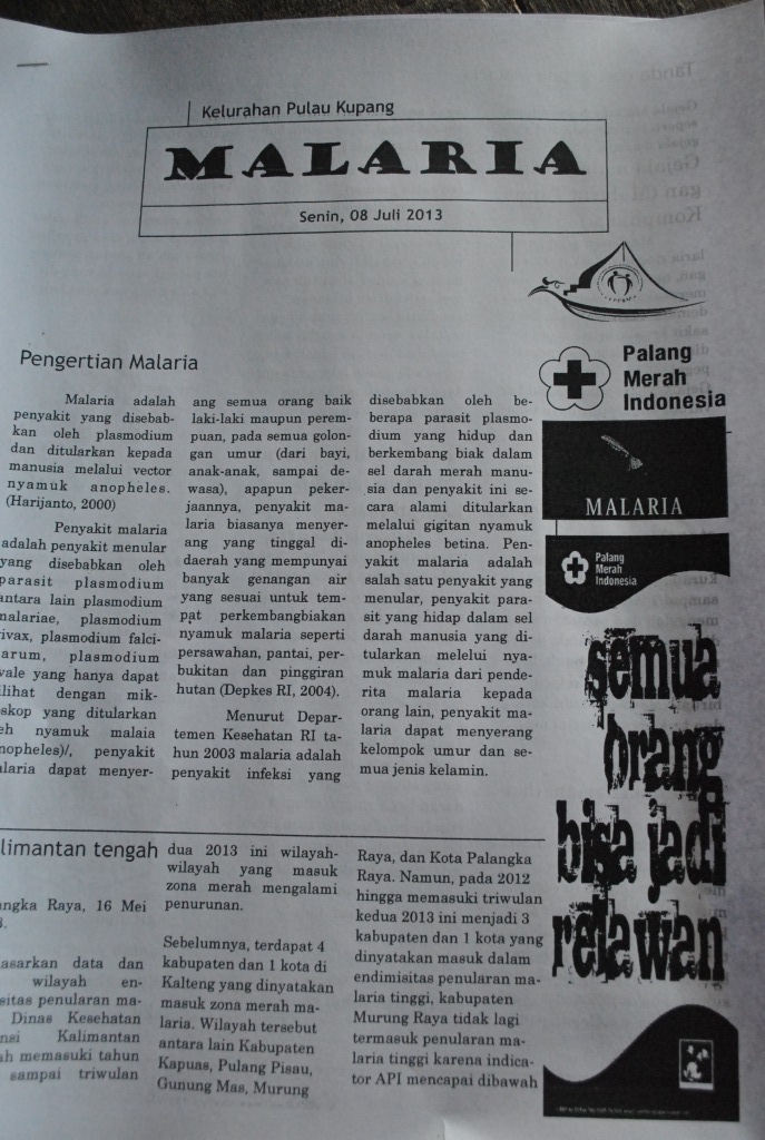 5 Relawan PMI Kab.Kapuas dan 50 Relawan Kelurahan Pulau Kupang mengadakan pelatihan seperti biasa di Aula Sirajul Huda, pelatihan kali ini membahas tentang Malaria.