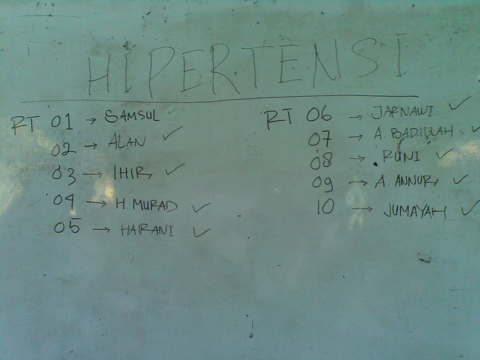 Fasilitator menjelaskan kepada Relawan Desa tentang apa itu hipertensi dan juga menjelaskan kembali tentang bagaimana cara pengunaan alat pengukur tekanan darah yang baik dan benar kepada Relawan Desa agar Relawan Desa dapat mengerti dengan jelas bagaimana menggunaan alat penugkur tekanan darah tersebut. Dengan adanya pemeriksa tekanan darah tersebut diharapkan agar Relawan desa dapat menggunakannya dikunjungan rumah tangga mereka dengan cara bergantian di masing masing RT.