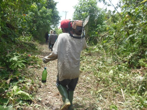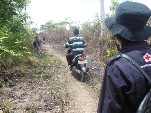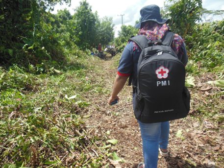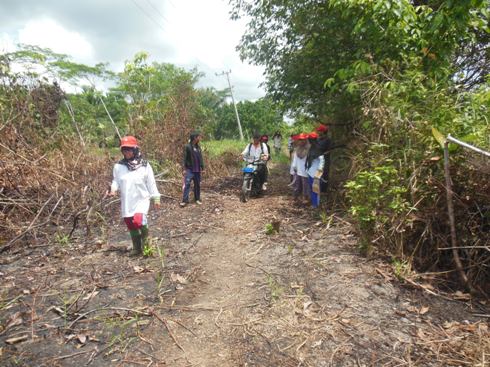 Bersama-sama menuju rumah Bapak Imis Relawan Desa RT 1 Terusan Raya