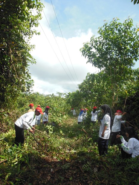 Jalan yang sudah dibersihkan dari pohon, ranting dan rerumputan..