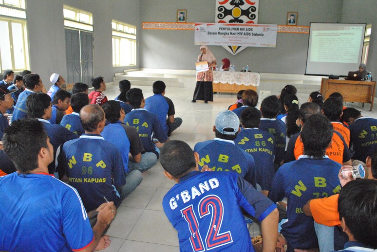 PMI Kabupaten Kapuas bersama dengan Komisi Penanggulangan AIDS dalam rangka HIV AIDS sedunia melaksanakan penyuluhan di Rutan Kapuas.yang pada kali ini materi disampaikan oleh ibu dr. Tri Setyautami, MPHM dari Komisi Penanggulangan AIDS.