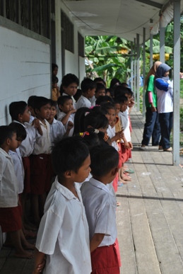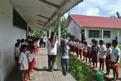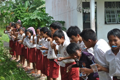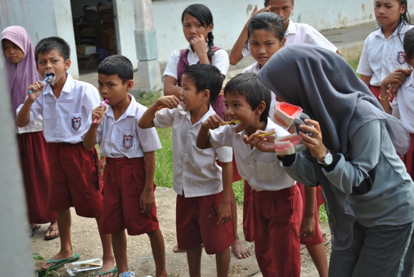 Pada kamis tanggal 7 November 2013, 3 Relawan Cabang dan 2 Relawan Desa melakukan kegiatan sekolah sehat dengan Tema “Simulasi sikat gigi yang baik dan benar” di sekolah SDN 2 Terusan Raya, disini relawan PMI memberikan materi tentang bagaimana sikat gigi yang benar dan menjelaskan apa saja penyebab-penyebab yang mengakibatkan gigi rusak dan berlobang seperti sekolah-sekolah lain di dua desa binaan lainnya seperti di Pulau Kupang dan di Handiwung, anak-anak sangat rentan terhadap gigi berlobang karena seringnya sembarang makan makanan yang tidak baik bagi gigi dan juga kurangnya memperhatikan kebersihan gigi seperti : Jarang menggosok gigi, suka makan yang manis-manis dan cara menggosok gigi yang salah. Maka dari itu relawan PMI mengajak para murid untuk mengetahui bagaimana cara mencegah dan cara menggosok gigi dengan baik dan benar.