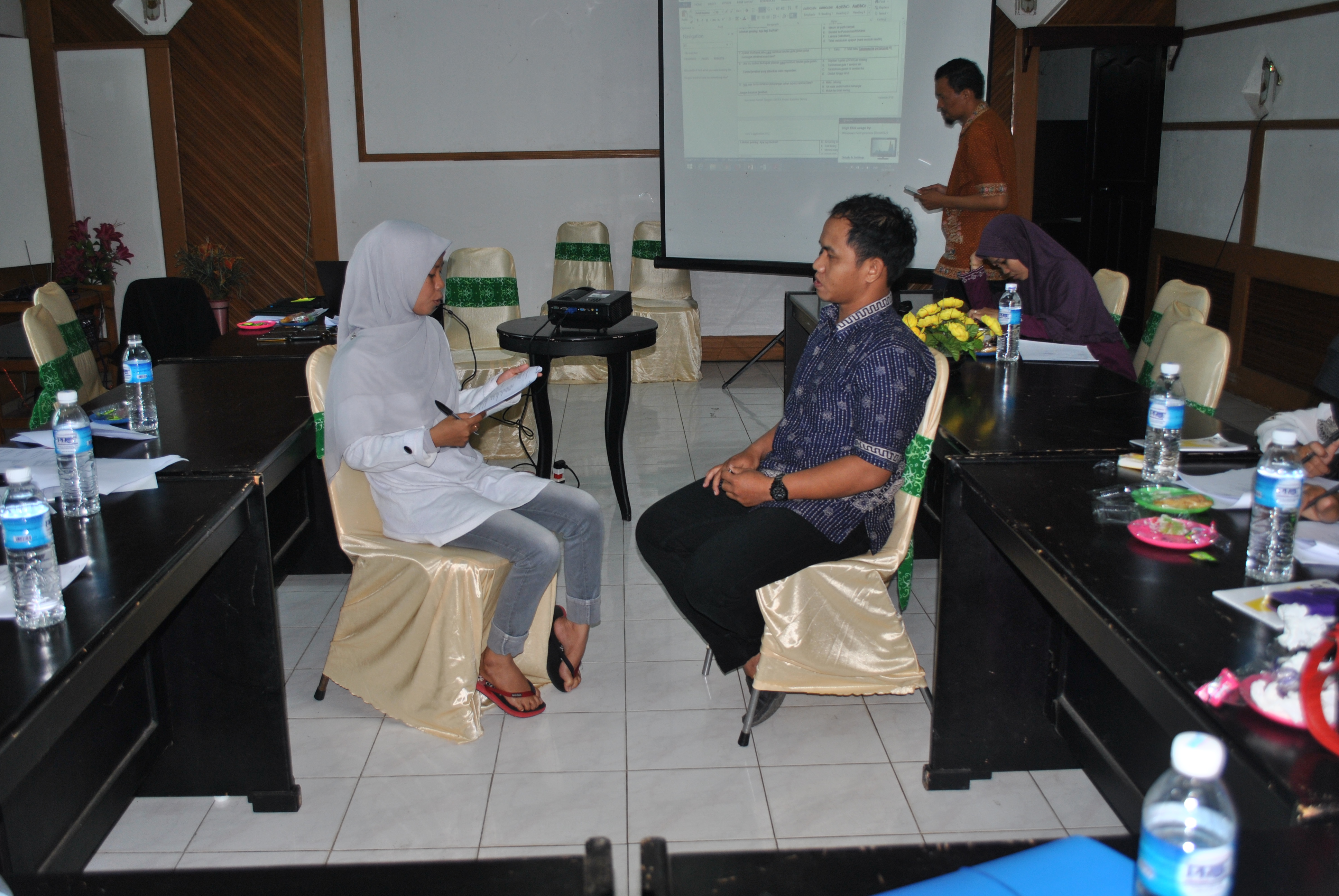 setelah pemberian materi oleh bapak. dr. Jum’atil Fajar, MHlthSc dilanjutkan praktek oleh peserta pelatihan yang diawali dengan antar peserta saling mewawancarai dengan menggunakan form pertanyaan yang telah disiapkan oleh narasumber (Secara manual), selanjutnya praktek dengan menggunakan HP yang telah disediakan untuk wawancara, peserta diminta untuk mencari narasumber disekitar lokasi pelatihan sekaligus menguji HP yang nantinya akan digunakan didesa.