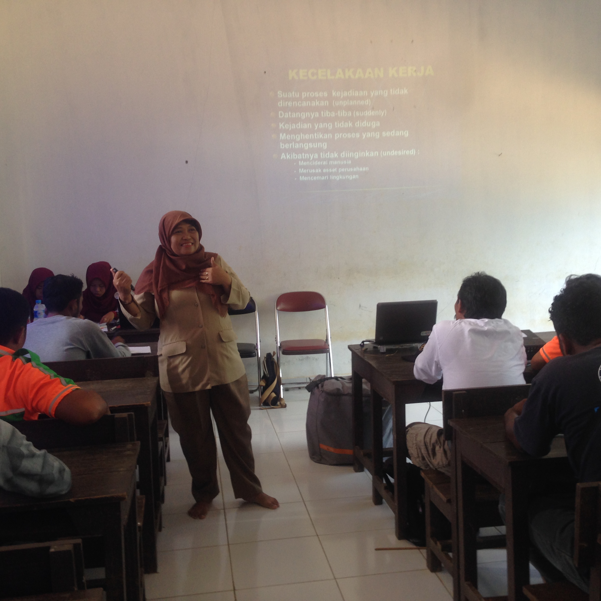 Fasilitator atau pemberi materi untuk pelatihan ini adalah ibu Tri Lestari yang menyampaikan materi tentang dasar dasar keselamatan dan kesehatan kerja dan undang-undang tahun 1970 dan dr.Jum’atil Fajar yang menyampaikan materi tentang pertolongan pertama