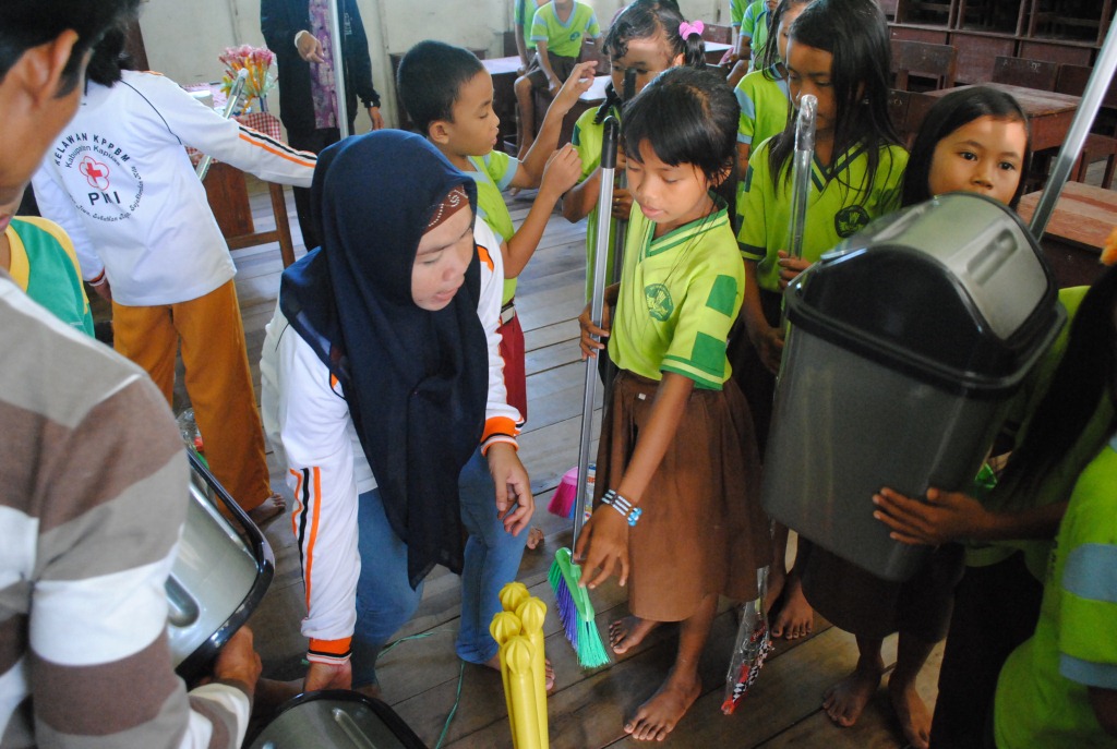 Tiga orang Relawan Cabang PMI kab.Kapuas dan empat orang Relawan Desa mengadakan kegiatan SEKOLAH SEHAT didua sekolah sekaligus yaitu, MI HIDAYATULLAH dan SDN-1 Handiwong.