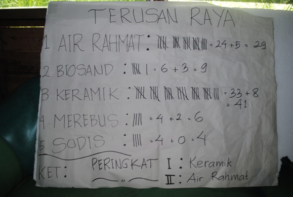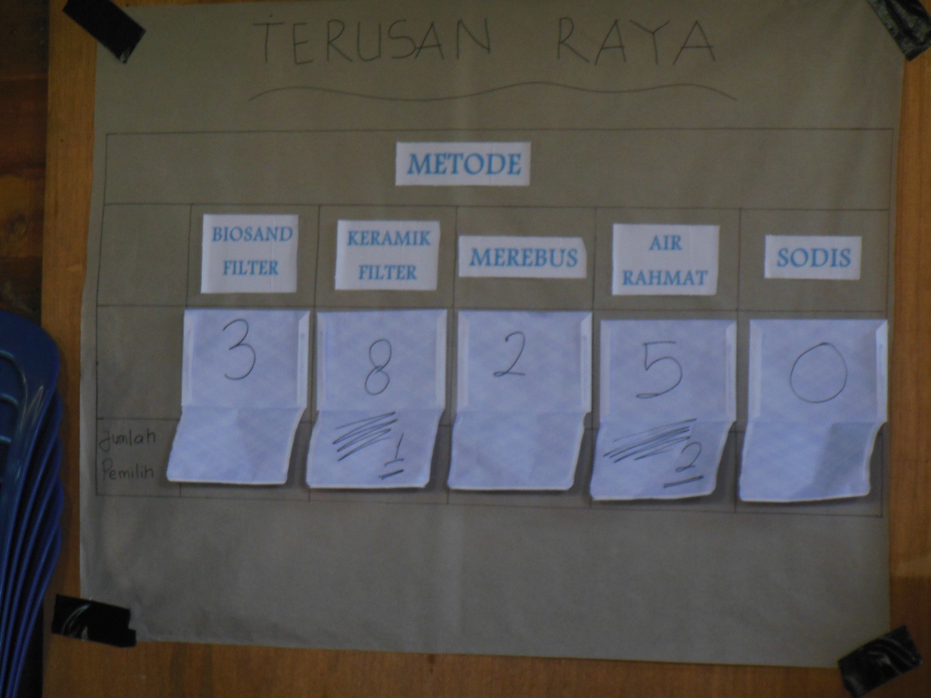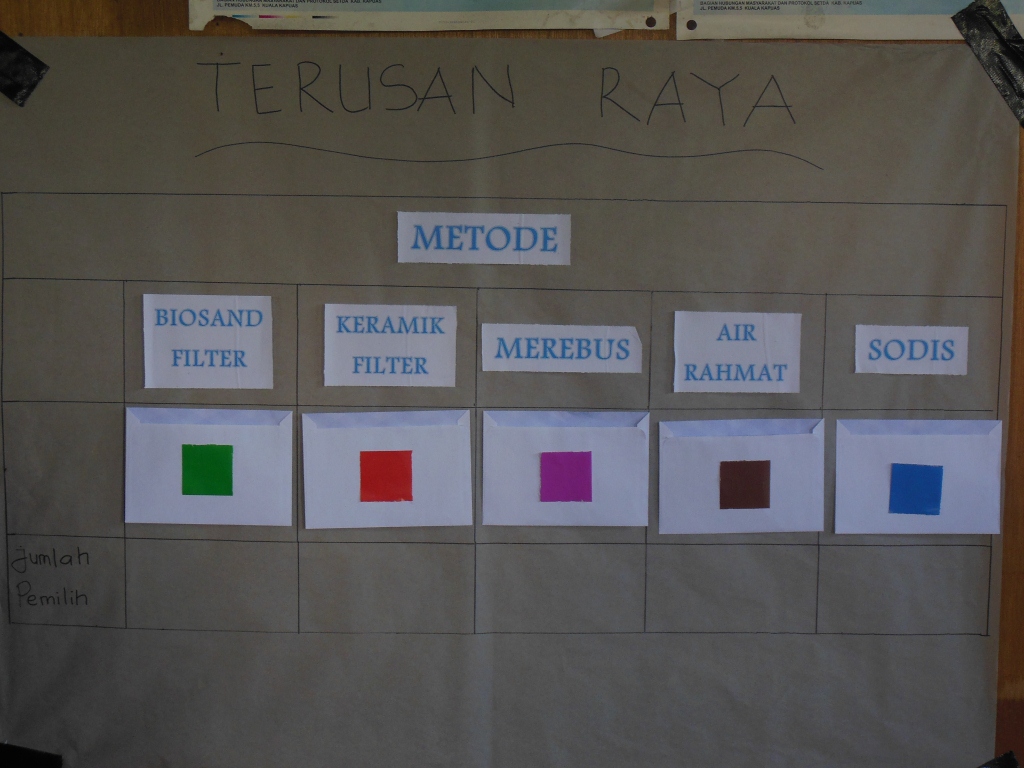 setelah melakukan promosi kepada Relawan desa yang lain, selanjutnya mereka melakukan pemilihan metode air yang mana metode itu akan digunakan oleh mereka dan warga Terusan Raya itu sendiri.