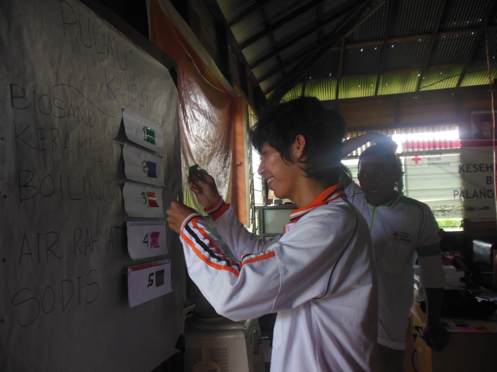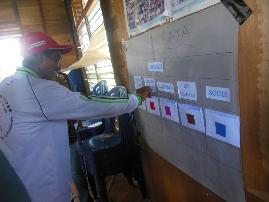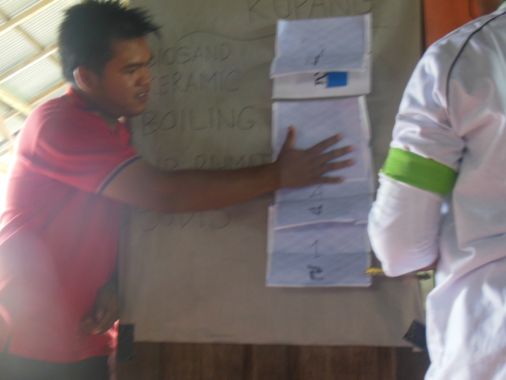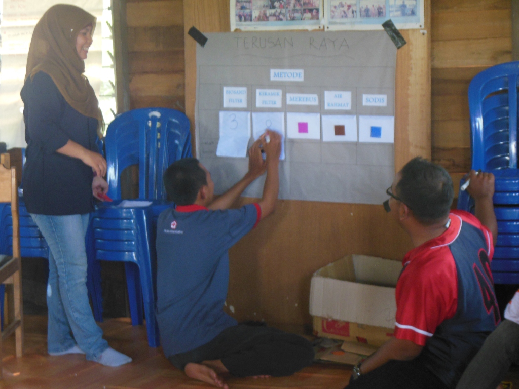 6 Relawan PMI Kabupaten Kapuas dan 43 Relawan Desa Terusan Raya Kembali melakukan pemilihan metode air minum yang aman, sebelum melakukan pemilihan, Relawan desa masing masing metode yang mereka pakai menjelaskan dan mempromosikan kepada Relawan desa yang lain agar bisa mengetahui apa saja keunggulan dan kekurangan metode masing masing.