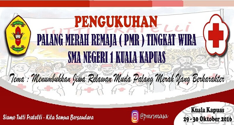 Pengukuhan PMR Tingkat WiraSMAN 1 Kuala Kapuas dilaksanakan pada tanggal 29-30 Oktober 2016 dan bertempat di SMAN 1 Kuala Kapuas , yang diikuti sebanyak 88 anggota PMR Wira. Kegiatan ini mengambil tema “Menumbuhkan Jiwa Relawan Muda Palang Merah Yang Berkarakter” yang berarti bahwa setiap relawan muda tidak hanya dituntut untuk dapat membantu sesamanya ,tetapi juga harus dalam berani mengambil keputusan dan siap untuk mempertanggungjawabkan akibat dari keputusan tersebut.